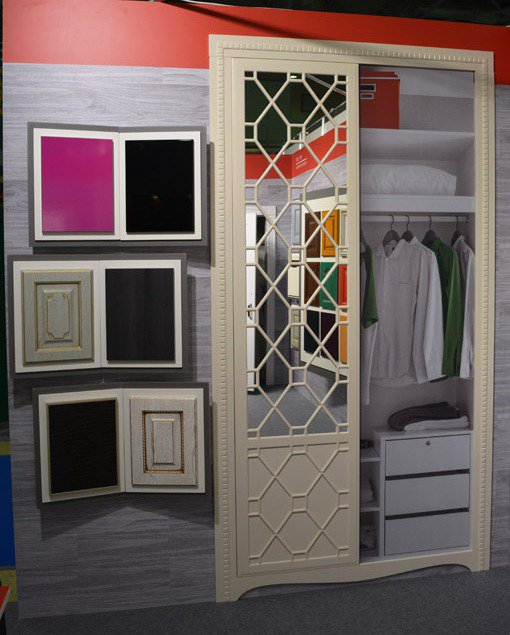 На стенде были представлены новые серии фасадов с интегрированной ручкой, а также фасады с искусственным старением – последний тренд в мебельной отрасли.